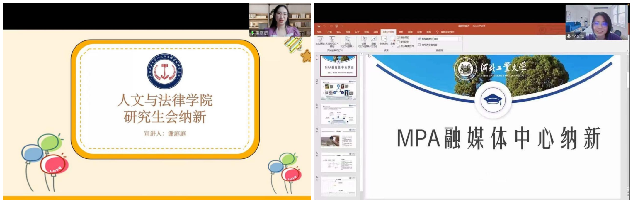 接下来研究生会主席谢庭庭对研究生会进行了介绍。学术部部长陆瑶、文体部部长马朋磊、外联部部长王春明和就业办公室部长张皓铭分别介绍了本部门的部门职责、日常工作和往期活动,并对新生的到来表示热烈欢迎。研究生会纳新结束后,融媒体中心会长李文灿对融媒体中心以及创意设计部进行介绍。新闻采编部部长牛淼、编辑排版部部长李钊、融媒体中心副会长陈锋分别对各部门工作进行了具体介绍。通过精彩的介绍,新同学们对即将到来的研究生生活有了更生动的了解,对丰富多彩的活动也产生了浓厚兴趣。