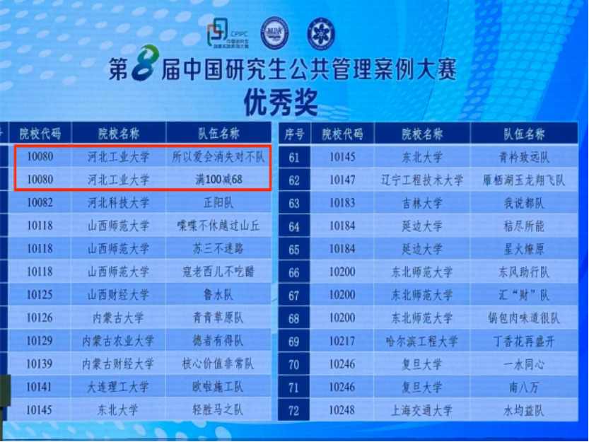 通过参与本次案例大赛,锻炼了我校MPA学生的文本撰写能力、案例分析逻辑等学术素养,也进一步提高了指导老师们的专业能力与实战经验,为进一步推广案例教学方法、加强师资队伍建设、提升MPA培养质量打下了坚实基础。