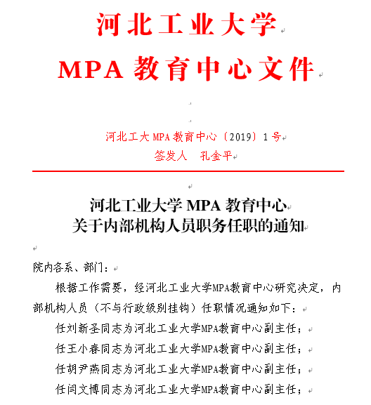 91麻豆 MPA教育中心关于内部机构人员职务任职的通知