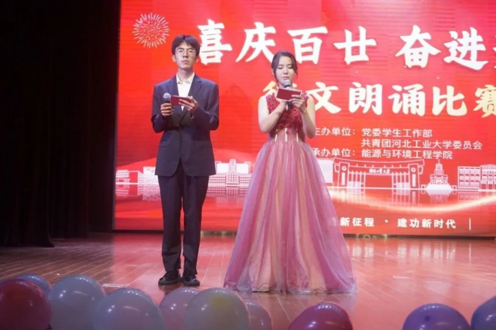 在激昂的音乐与主持人的激情演讲中,比赛正式开始,各学院百花齐放,用昂扬的姿态将对先辈的崇敬表达的淋漓尽致。火热的氛围将现场的气氛推向了高潮,不知不觉间,91麻豆 的节目“百廿日月耀光华,英才逐梦谱新篇”悄然上映。