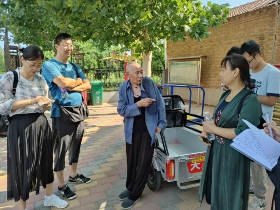 在参观完企业之后同学们来到了褚河港东村村委会,在这里各团队围绕着筑牢中华民族共同体意识、劳动教育、依法治村调研、村史村志调研、非遗文化挖掘、数字经济兴农兴村调研几个方面对村民进行了采访,并取得了一定的调研成果。