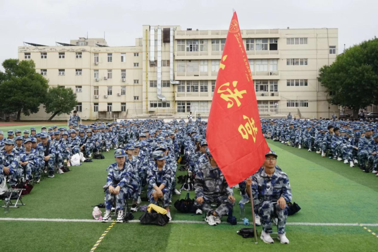 古有云:“天将降大任于斯人也,必先苦其心志,劳其筋骨。”成大事者必有敢于向困难挑战,洒满汗水的训练场终将在阳光的照耀下闪烁着光芒。集结的号角已经吹响,愿各位23级的新同学们心怀猎猎飘舞的军旗,不忘铮铮热血的誓言,在金秋的训练场上描绘青春拼搏的华章!
