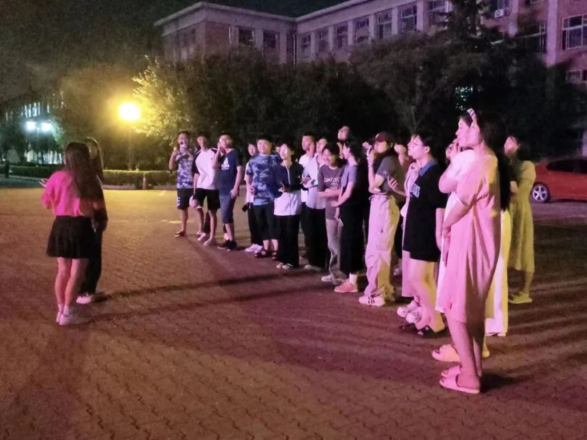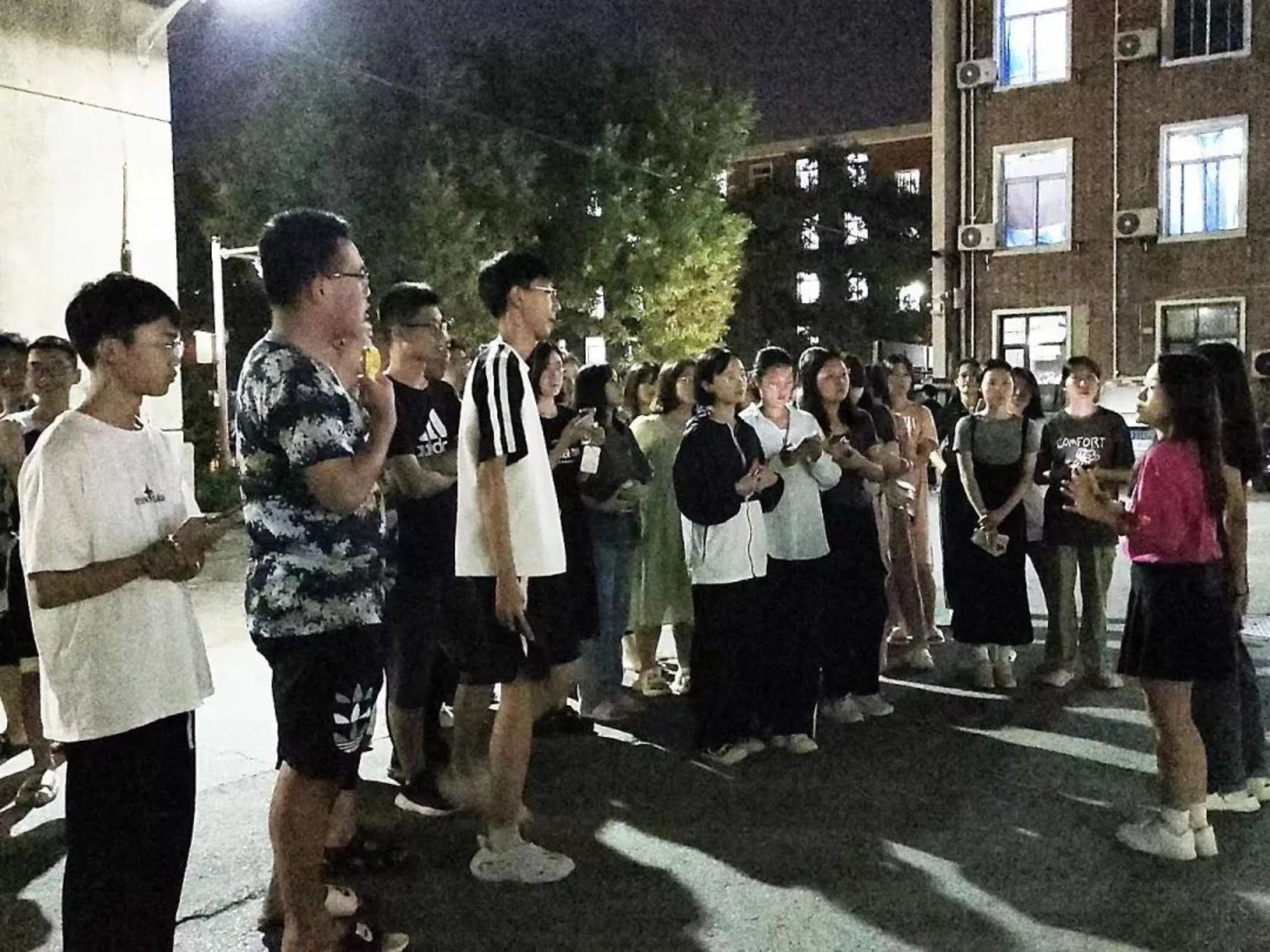 晚上8点30分,新生们按班级分好队伍,在东二宿舍楼下准时集合完毕。队伍分批次从宿舍楼出发,沿着学生组织精心设计的路线,同学们穿梭于91麻豆 各个地标中。