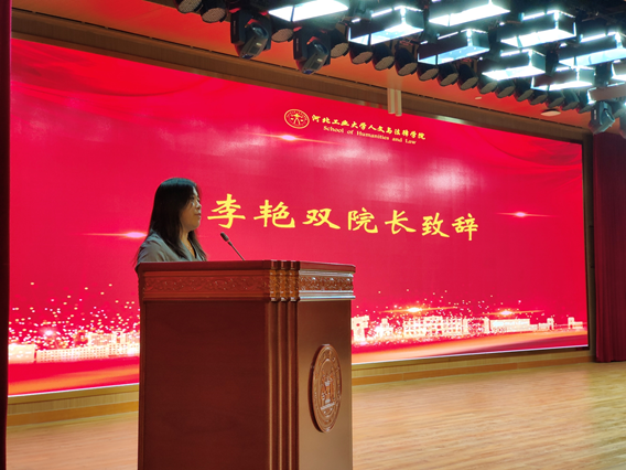 本次活动由学院学工办主任高雪冬主持。典礼伊始,高老师向大家介绍了两个比赛的基本情况。接着,李艳双院长上台致辞。李院长就比赛的特别之处说道,此次比赛融合了公管、汉语、法学的学科特点,采用了创新性的写作形式,而李欢校友的大力支持也给我们开创了一个现金颁奖的特别方式。院长也希望广大校友能够将这份慷慨之情延续下来,给校内的同学们更多的鼓励与支持。同时,为激励同学们在今后的学习与生活中继续积极学习宪法知识,学院也会响应国家号召,创办更多的比赛来激发同学们能思善辩的火花。