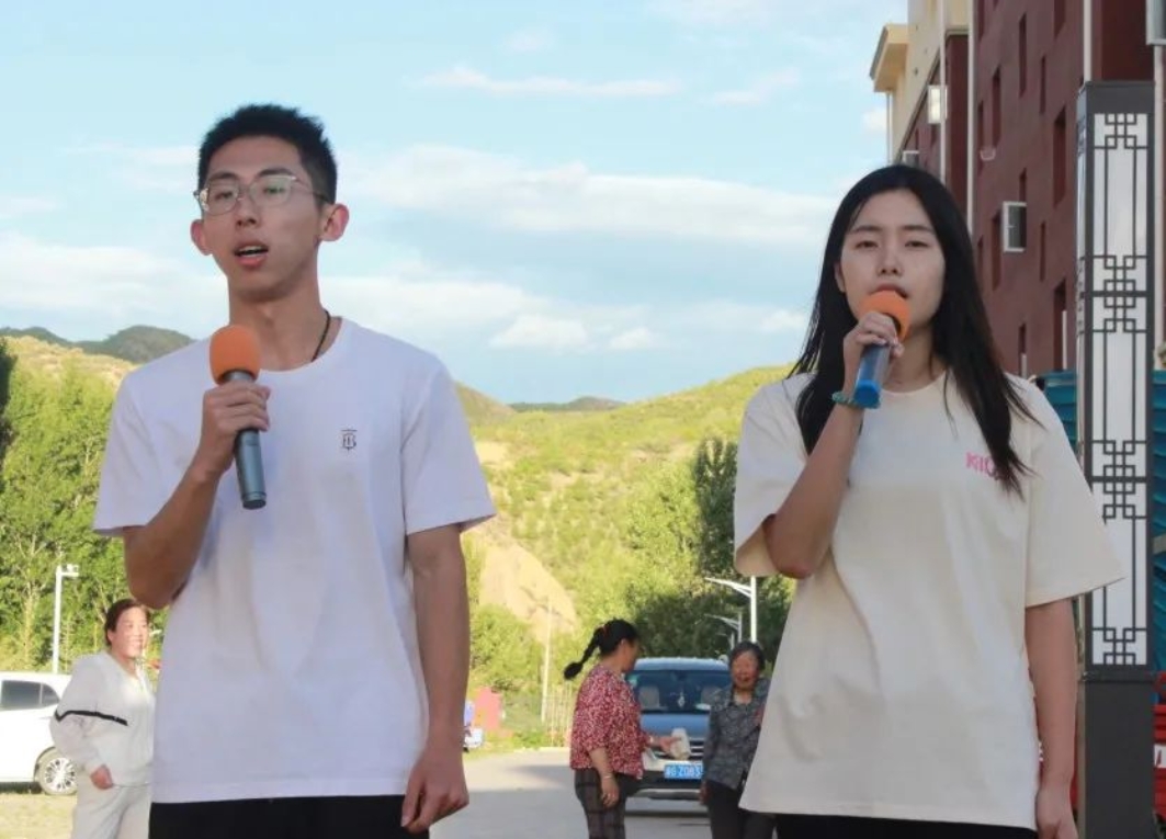 现场的实践队员们邀请到了镇宁堡中心小学三年级学生曹清宇演唱儿歌《七色光之歌》,11岁孩子的歌声纯洁清澈,银铃悦耳;全体实践成员合唱的《夜空中最亮的星》,召唤出青春希望的力量,用歌声勾勒出星辰大海的唯美画卷。