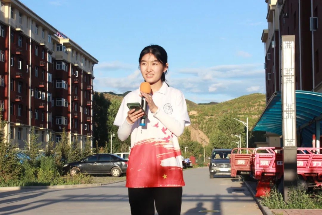 实践队员江萨出拉为大家带来了蒙语歌曲《心中的恋人》,歌曲悠扬绵长,歌声婉转动听,令人陶醉,跟随着歌声,大家仿佛来到了天地广阔的茫茫草原,感受到了草原民族的热情与豪迈。