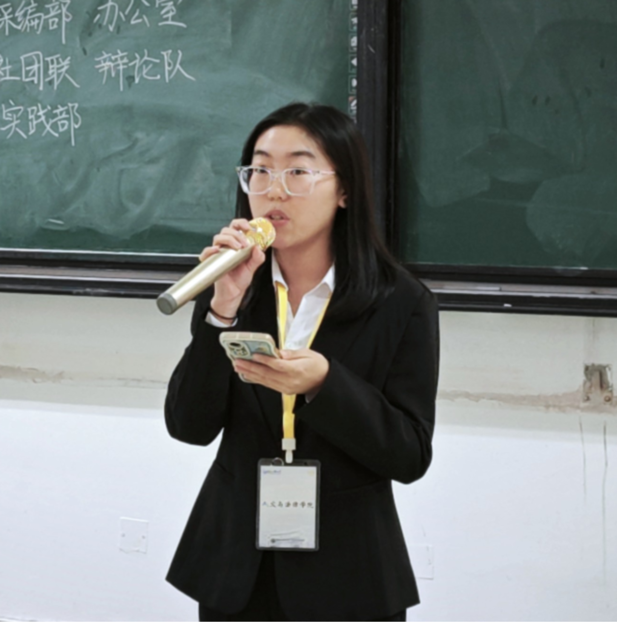 路嘉欣主席回顾了自己之前的学生组织工作经历,在工作中收获和成长。最后希望大家能够在未来不断进步,发掘个人的特长和技能,享受一个充实而又快乐的大学生活。