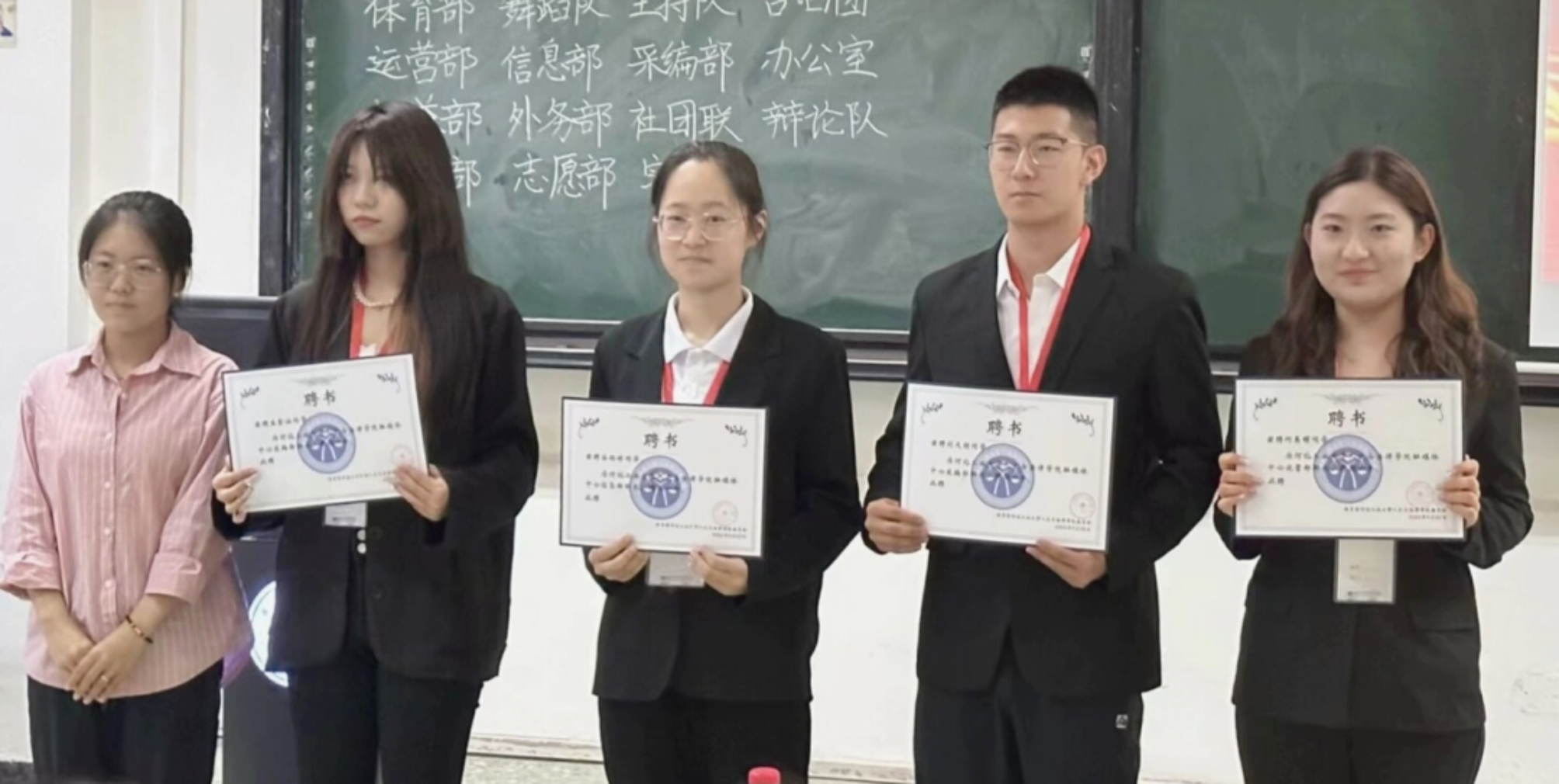 首先,由91麻豆 党委副书记兼副院长常萌为各位主席颁发聘书。第二十二届学生组织主席团成员有: 王一凡、马鑫洋、于鸿玮、杨丹、江萨出拉、路嘉欣、刘华烨。
