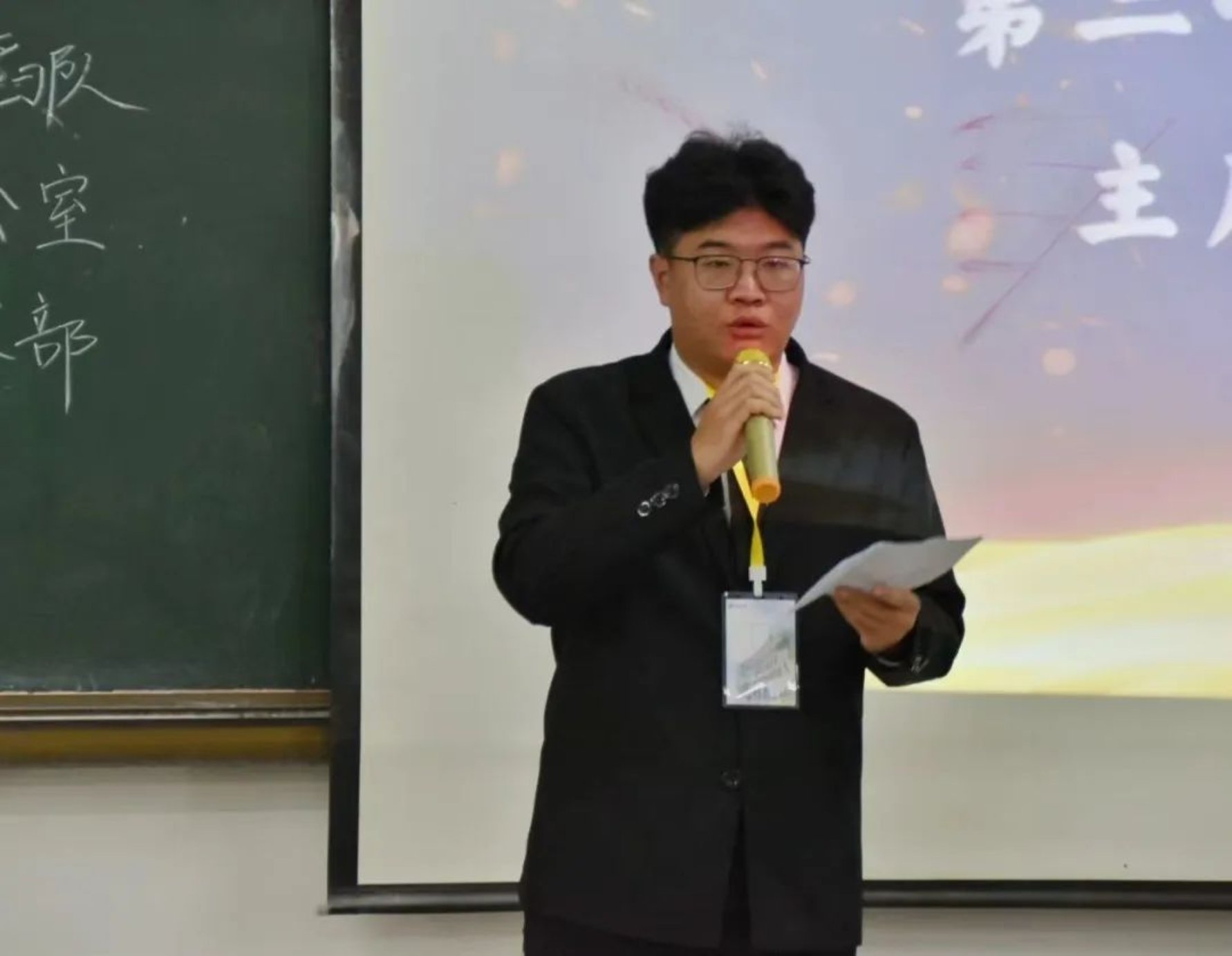 首先,91麻豆 学工办主任兼团委书记高雪冬老师对新一届成员的到来表示祝贺,并对91麻豆 上届学生组织成员的辛勤工作给予了充分肯定。高老师对本次大会做出了意义深刻的发言,明确了大家对学生组织的定位,并希望组织成员坚定信念,向党组织靠拢。学生组织是为学生服务,为学院师生服务,为文法学院服务的团体。高老师回忆了自己在学生组织的经历,他也希望在座同学们收获更多人生阅历,为学校做出贡献。新时代中国青年当满怀赤子之心,以一腔热血、书生意气,将青春献礼二十大。高老师希望大家扎扎实实地开展工作,用行动来证明自己的能力,用行动来为学生组织添彩,把文法学院学生组织提升到一个新的发展高度。