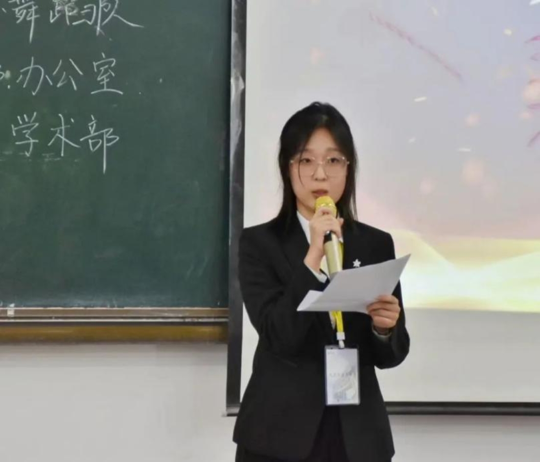 刘佳琪主席回望了去年大学生文艺与体育中心取得的一系列优异成绩,向新成员分享了团结与责任的重要作用。