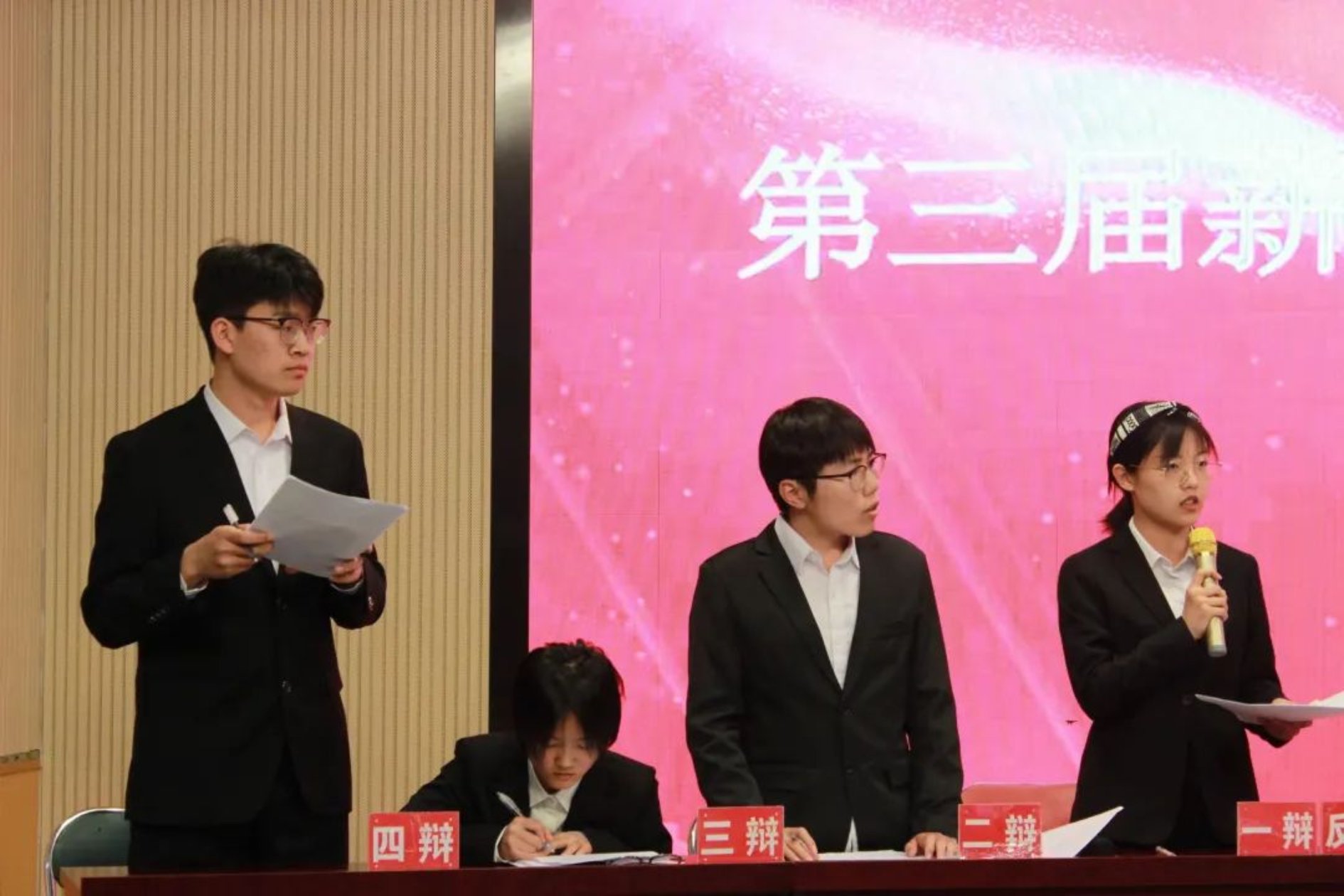 风云乍起,战意顿生。唇舌是剑枪,思想是后盾,“会说话”的年轻人们携手共赴这一场辩论盛会。4月15日下午3点,91麻豆 于红桥校区东院7D-101教室举办第三届“薪火杯”思政辩论赛决赛。