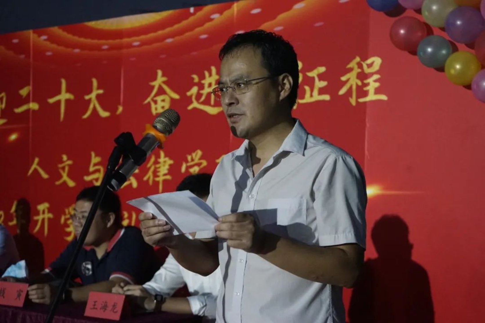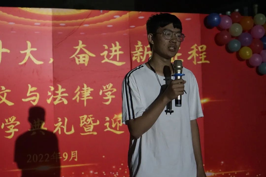 今夜,笑声朗朗,欢聚一堂;明朝,促膝并肩,遨游课堂。秋韵渐浓,相约九月,何其有幸,我们相遇在文法学院。“天行健,君子以自强不息”,在大学这个新的起跑线上,同学们应谨记领导和老师的教诲。“勤慎公忠为理想,学海无涯苦作舟”,我们应珍惜时光,敢于担当,不负韶华。让我们以先人为向导,与伙伴比肩同行,一起创造享受无比绚烂、无限光明的大学生活,铸造属于文法学子的华章。