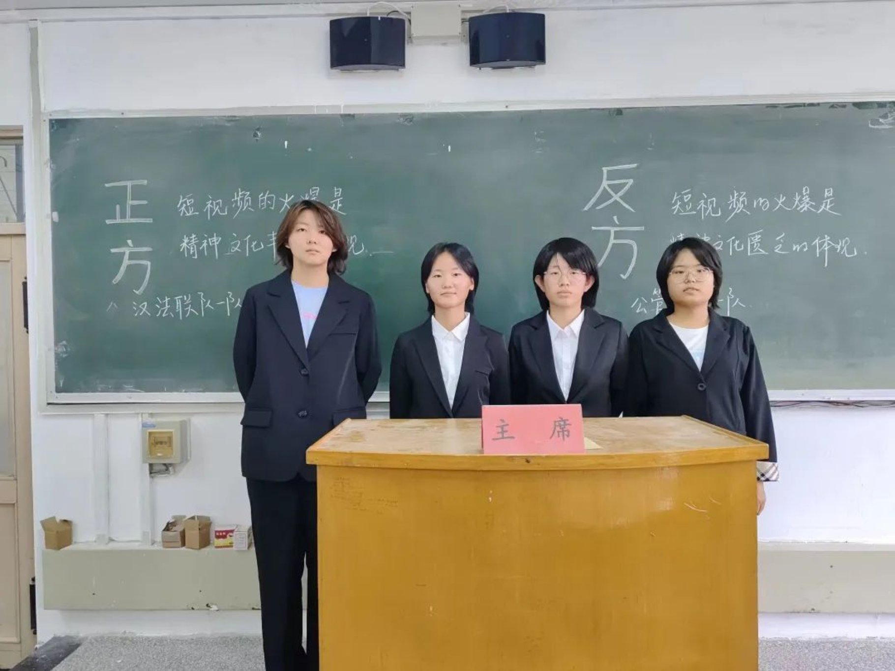 随着自媒体时代的到来,短视频作为一种新兴的网络信息传播方式,逐渐深入我们的生活。正方和反方围绕“短视频的火爆是精神文化丰富还是匮乏的体现”展开辩论。正方认为短视频的火爆是精神文化丰富的体现,其多元化的特点为大众提供了更多分享生活的平台,让更多人能够通过媒体了解更多自己感兴趣的内容;反方则认为短视频的火爆是精神文化匮乏的体现,当人们养成把浏览手机短视频理所当然的习惯,便不能静下心来读书品茶,这会给人民的精神文化造成巨大损失。双方你来我往,辩论激烈,切中要点。最终,正方获得胜利,最佳辩手”为正方三辩李舒翰同学。