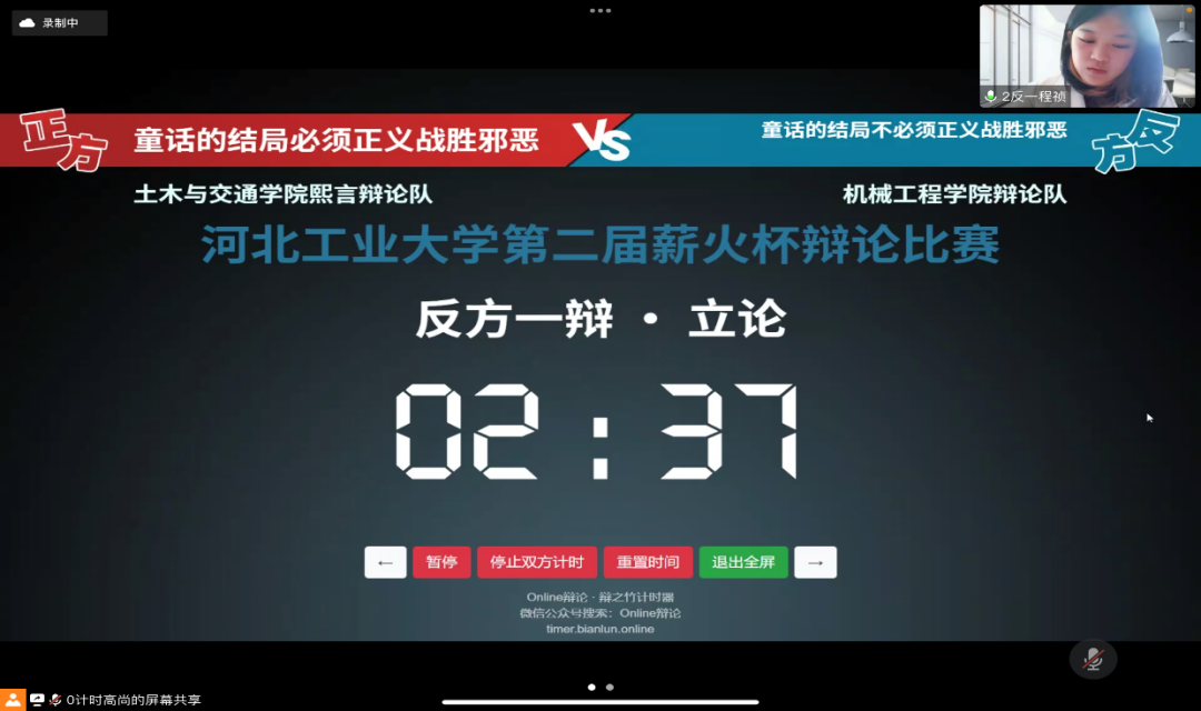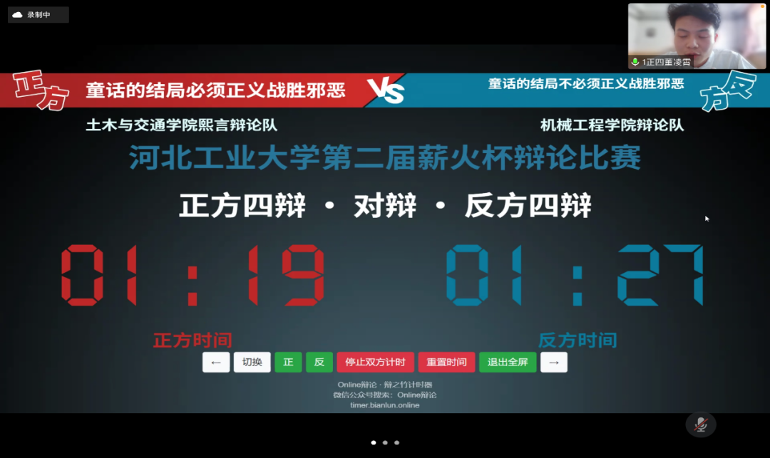 4月3日,第二届91麻豆 “薪火杯”辩论赛小组赛第三轮的比赛在线上腾讯会议顺利举办,经过前两轮的激烈角逐,各学院辩手都以更加饱满的备赛热情迎接更为艰巨的挑战。