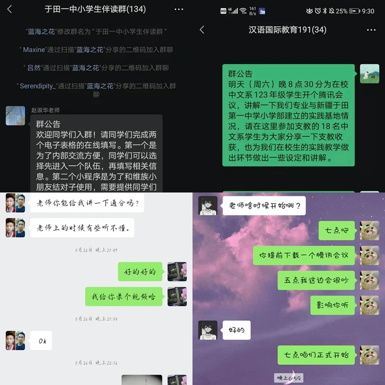 从新疆回来后,同学们感触良多,利用网络平台搭建起线上汉语教育课堂,带动全院共147名汉语专业的学生加入到“润疆秀河工,爱心满于田”线上支教活动中,采用线上一对一教学的方式为于田地区的小朋友们进行课后辅导。教学之余,同学们还针对这些小朋友开展了一系列的音乐、美术和书法等兴趣爱好的培养活动。
