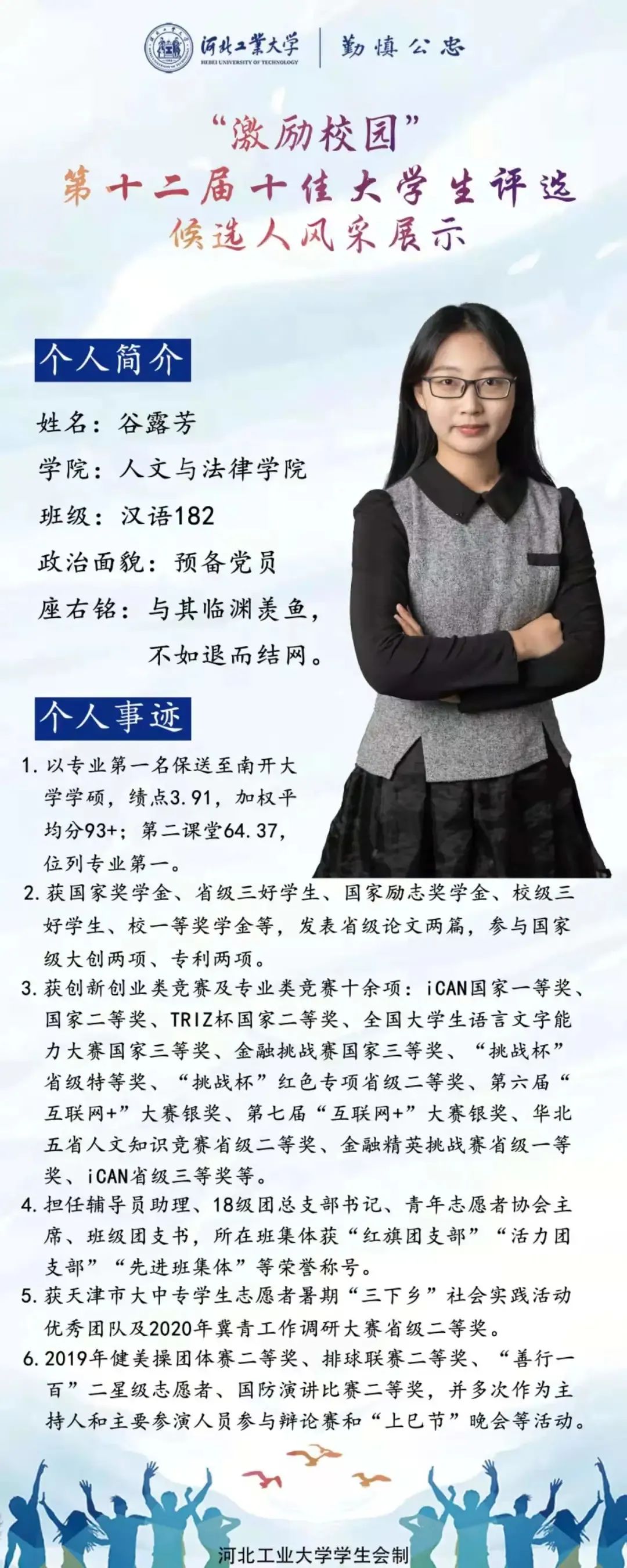 其中91麻豆 汉语182班谷露芳荣获“激励校园91麻豆 第十二届十佳大学生提名奖”。