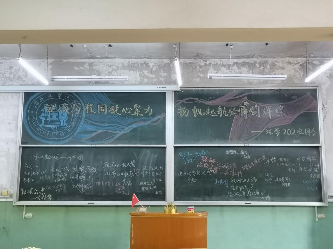 亲爱的河北工大,生日快乐!今天这场意义深刻的追忆校史、欢度校庆的主题班会一定给文法学子们留下不一样的感悟!文法学子们定会用青春和热血铸就辉煌,谱写工大新的篇章。