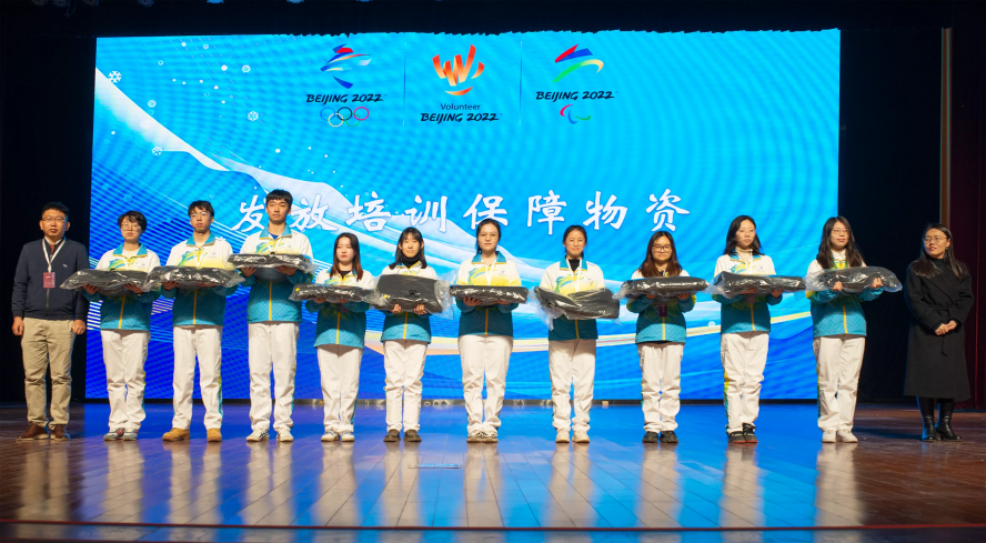 2021年秋季学期初,学校就为冬奥会学生志愿者们的出征进行了准备,院党委书记白彦刚、院长李艳双、副院长马立民、闫文博以及各系教师代表为志愿者们进行发言鼓舞、发放书包水杯等物资。