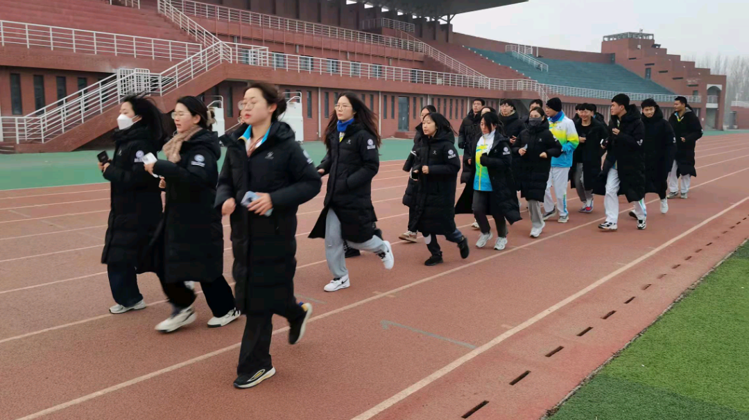 此外志愿者们还进行了第一次集体跑步,大家身穿黑色战袍,即使身处寒冬依旧热情洋溢,坚持跑完两公里,为冬奥会铸就坚强体魄!