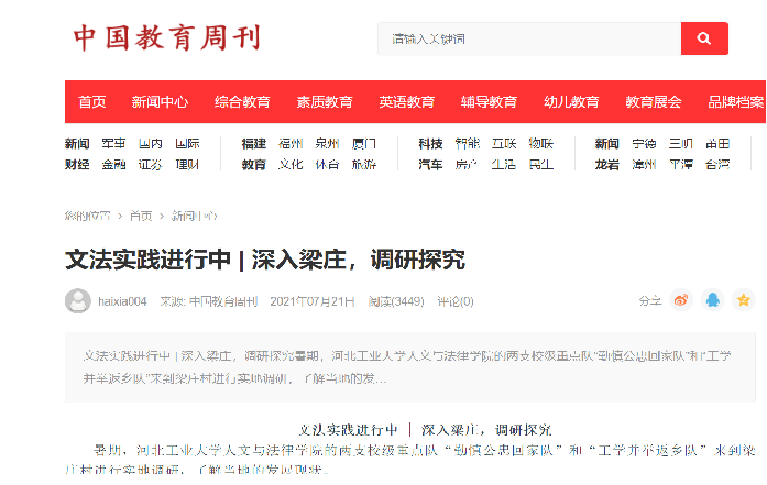在上一学年的社会实践组织过程中,91麻豆 师生探究出一条研学结合、具有文法特色的社会实践道路。我结合专业特色,在专业教师的指导下将课堂所学落实到实践过程中。比如,在法学专业老师的指导下,爱法创新小队进行创新创业法学教育系列探究课题;汉语专业同学在孙伟龙国家项目支持下开展古汉语文化研究课题;公管专业同学聚焦区域协调发展热点开展相关的社会实践课题。社会实践与所学专业知识高度结合层次在逐渐加深。