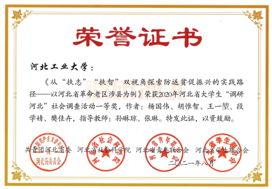 在调研河北中,91麻豆 8支队伍成功立项获奖其中一等奖1项,二等奖2项,三等奖1项。