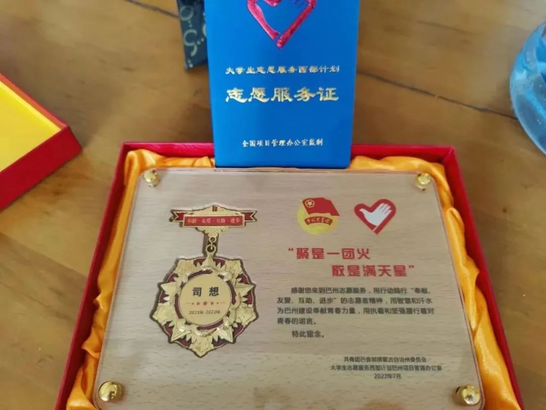 “享受每一天在西部的生活,是磨砺也是成长”,在西部的大地上,司想在服务热潮中勇争先锋,秉持“勤慎公忠”的校训,坚定目标、勇于创新、不断进取,积极为西部发展做出贡献。在他的身上,奉献、友爱、互助、进步的志愿精神在闪光。
