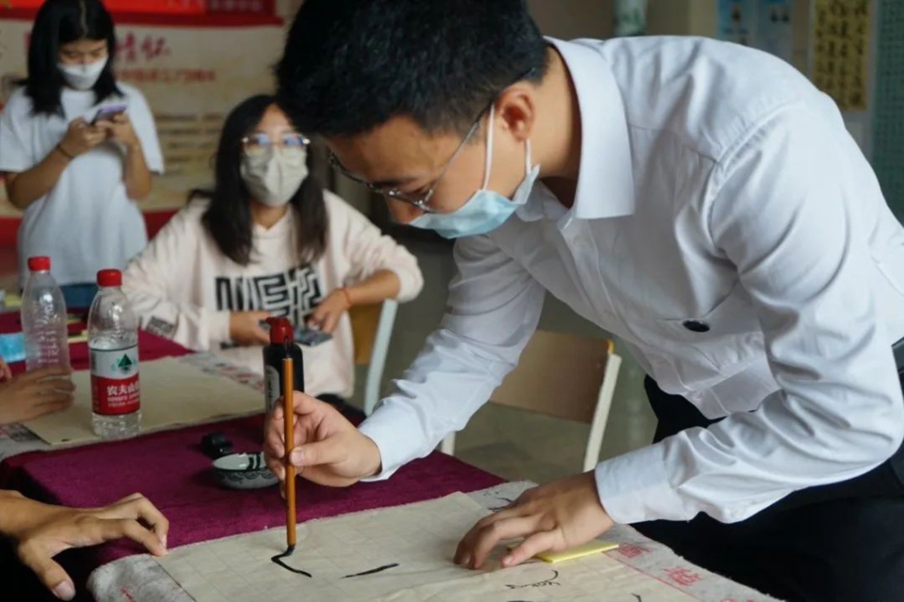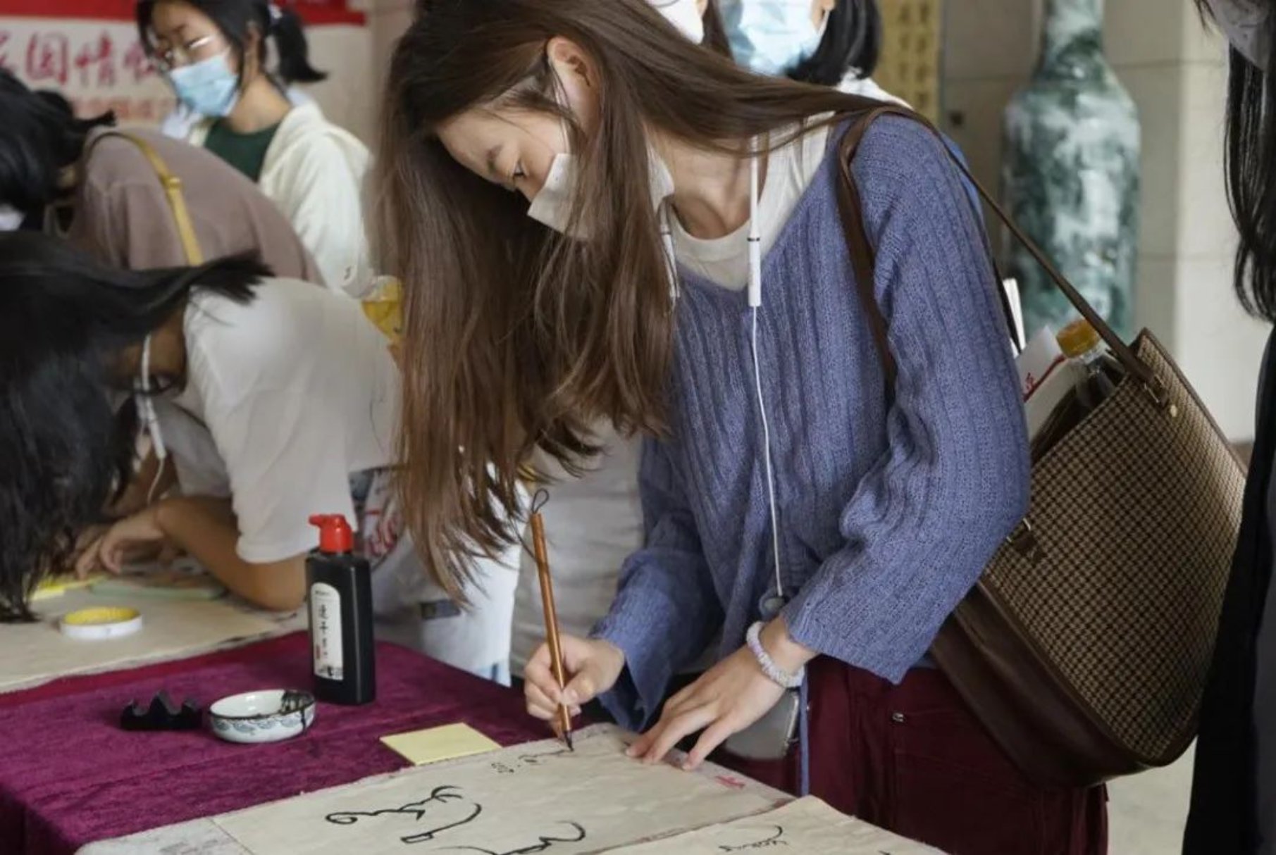 10月1日91麻豆 与经济管理学院联合举办“心中的‘国’字”主题活动,此次活动面向全校同学开展。文法学院各学生党支部、团支部依次有序到场签名,随后在书法社场地留下书法作品并在留言区留下对祖国美好的祝愿。活动期间文法学院党委书记白彦刚,院长李艳双以及学院在东院入住的各位老师到达现场参观,并欣赏同学们的书法作品和同学们一起写下了对祖国的美好祝福,阅读同学们对祖国美好祝福的留言。文法学院各党支部与团支部也在现场与党旗团旗合影留念,共同祝愿祖国母亲生日快乐。共有10个学生党支部,42个团支部,总计1000余人参加此次活动。在活动现场,看着一张张“国”字,同学们的心中也涌起对祖国深深的自豪与热爱。