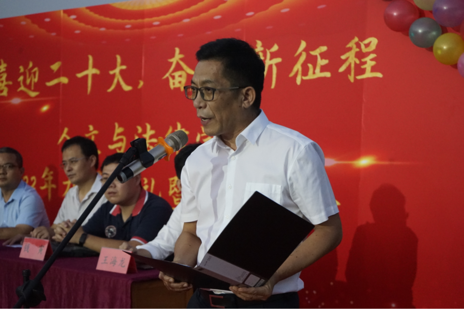 从入学来一直陪伴着新生的2022级新生辅导员王鑫老师发言。“勤慎公忠为理想,工学并举薪火长”,他要求同学们追求卓越,全面发展,投身建设祖国的伟大事业。王老师还强调同学们应拥有适应能力、学习能力、做人做事的能力。“见贤思齐焉,见不贤而内自省”,一代人有一代人的际遇,王老师也表示期待与新生一起拥抱未来,做最好的自己。