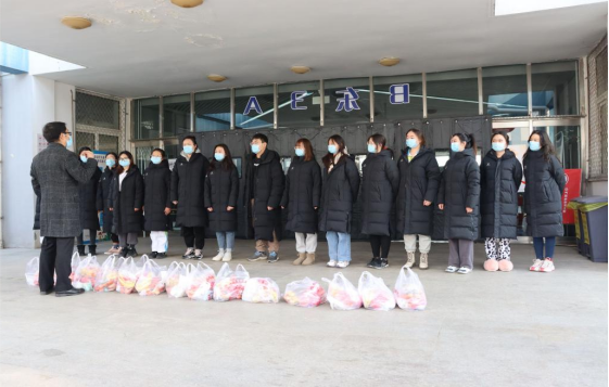 学院为文法学院的冬奥会志愿者们送来了新鲜的水果、酸奶和润唇膏等后备物资。
