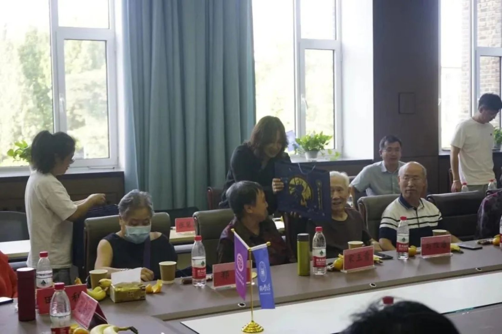 正如老师们所言“学校从未忘记我们”,在一声声恳切的嘱托中,学院为退休教师送上印有工大校徽校训的月饼,并致以节日的祝福。最后,与会教师在文法楼前合影留念,并订下再见之约。