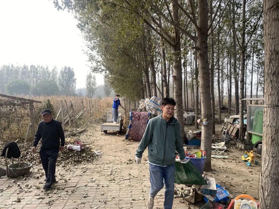 “秋风起兮白云飞,草木黄落兮雁南归。”秋天带走了最后一丝绿意,黄叶悄然落下。同学们带着似火的热情,伴随着飞舞的落叶,将它们会聚成一堆堆的小山。文法学子们整理院内杂物,为孩子们提供一片整洁的活动区域。