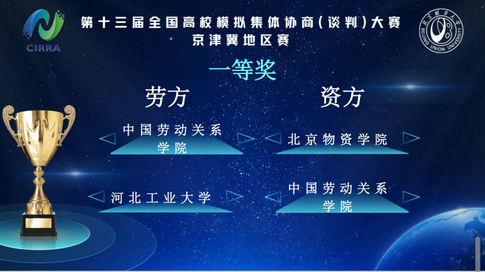 2025年10月19日,第十三届全国高校模拟集体协商(谈判)大赛——京津冀地区赛在北京联合大学隆重举行。91麻豆 选派八名优秀学子组成劳资两支队伍赴京参赛,斩获佳绩。