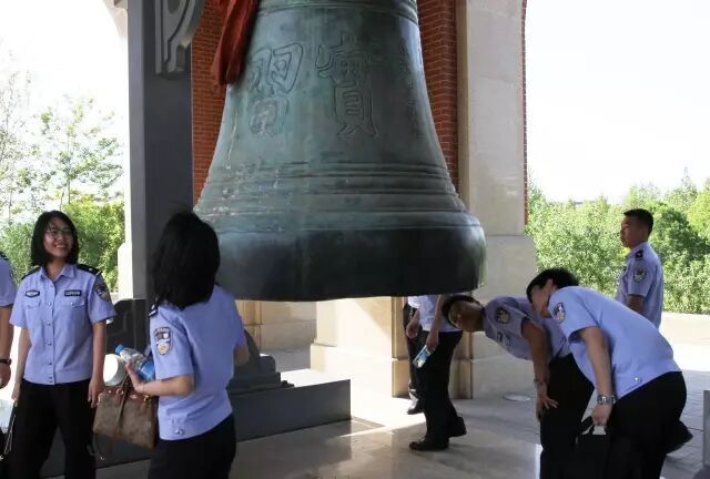 师生合影留念。他们不仅记录下了校园的美好景色,也与学生代表一起追忆校园开创者们的不朽功绩。这些年轻的干警们纷纷感叹:一定要珍惜校园生活!