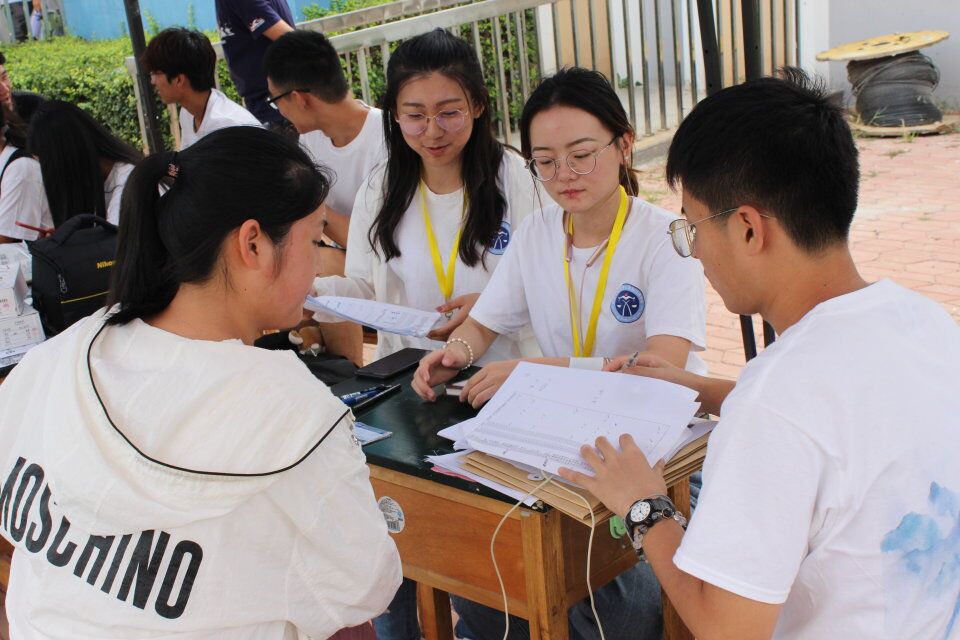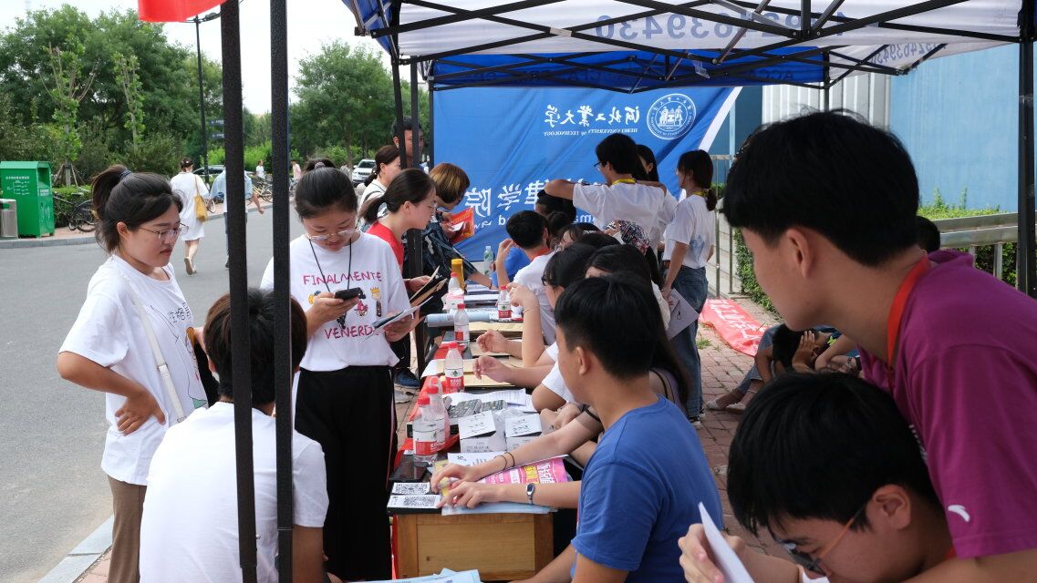 经过漫长的暑假,在余热犹存,秋意初现时,91麻豆 2019级新生于8月22日、23日正式报道。22日-23日上午8点到下午6点,91麻豆 在木华园七栋宿舍楼下搭起帐篷,组织纳新活动。迎新摊位前新生来来往往,络绎不绝,有时甚至排起了长龙。他们来自五湖四海,自天南地北赶赴津门,他们脸上洋溢着的兴奋与快乐,内心的无限憧憬和满心欢喜,却是相似的,也是最真实的。院学生会的学长学姐与新生负责人认真投入工作,为新生们收取材料、分发物品、指明道路,积极帮助新生们解决问题,迎新工作秩序井然。