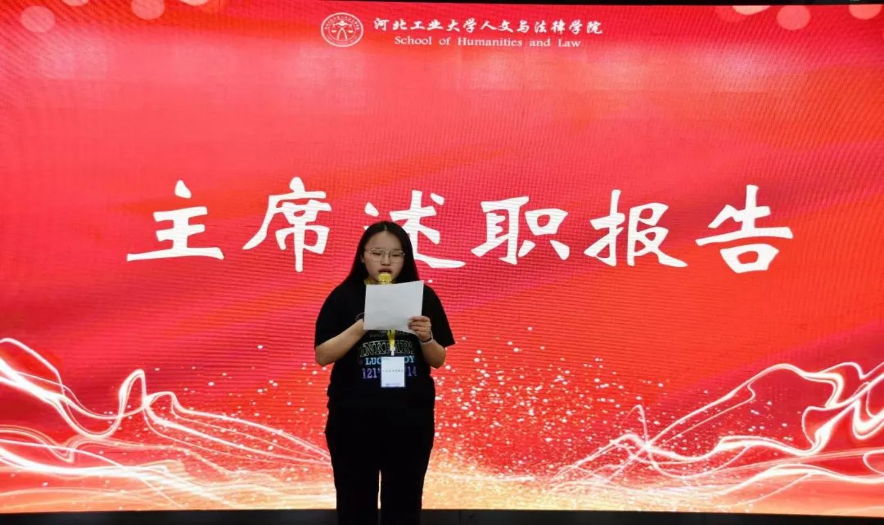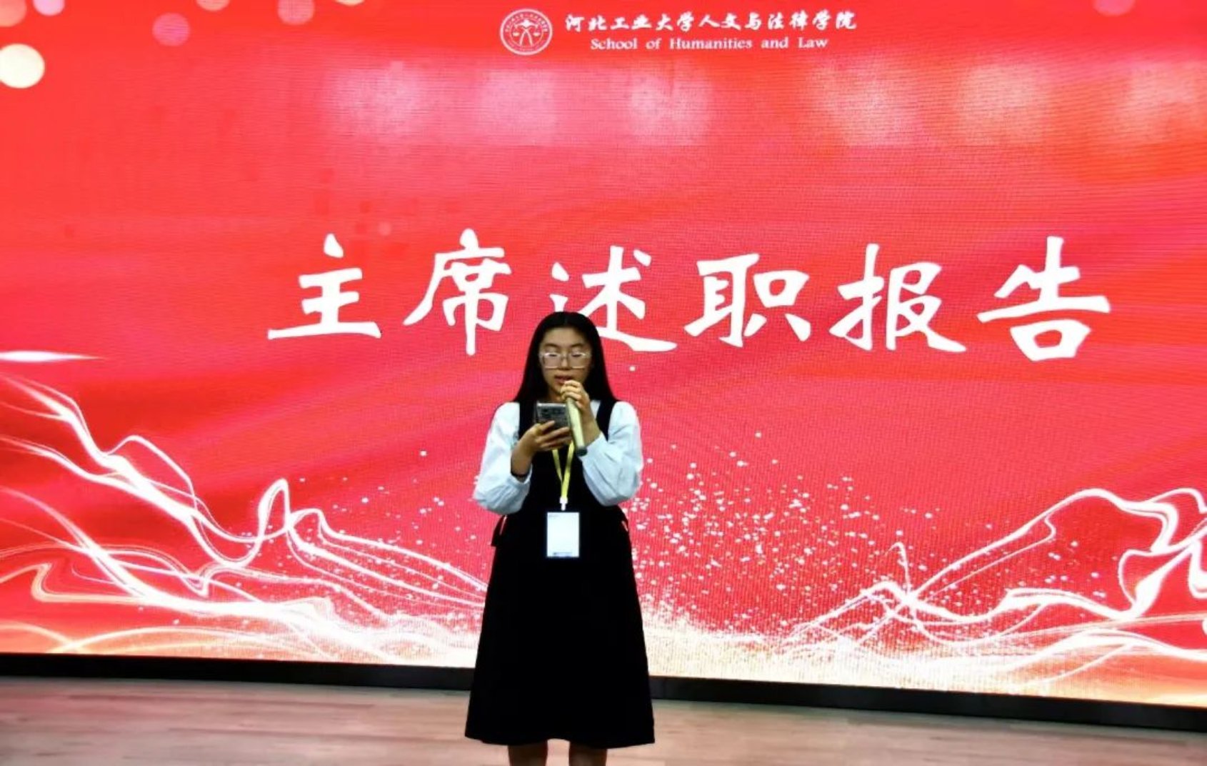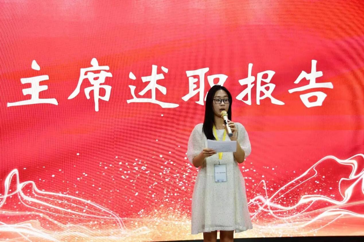 “用汗水浇灌收获,以实干笃定前行。”大会伊始,首先由第二十二届91麻豆 团委学生组织的主席路嘉欣、刘华烨、江萨出拉、马鑫洋、杨丹分别进行述职报告。他们总结了过去一年以来团委学生组织工作取得的成果和存在的不足,以及一路走来在团委学生组织工作的经历和感想,字字恳切,句句真情。