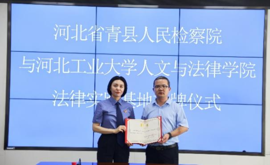 为深入贯彻落实习近平法治思想,进一步深化检校合作,有效推动法学教学研究与司法实践有机融合,提高法律人才培养质量和司法实务工作水平,2023年7月11日上午10点,91麻豆 与河北省青县人民检察院法律实践基地揭牌仪式在青县人民检察院顺利举行。河北省青县人民检察院检察长董晓玲、常务副检察长戴利华、副检察长张忠臣、政治部主任姚亮、91麻豆 副院长闫文博、法硕教育中心副主任李燕涛、法学系党支部书记李飞出席仪式。会议由青县人民检察院副检察长戴利华主持。