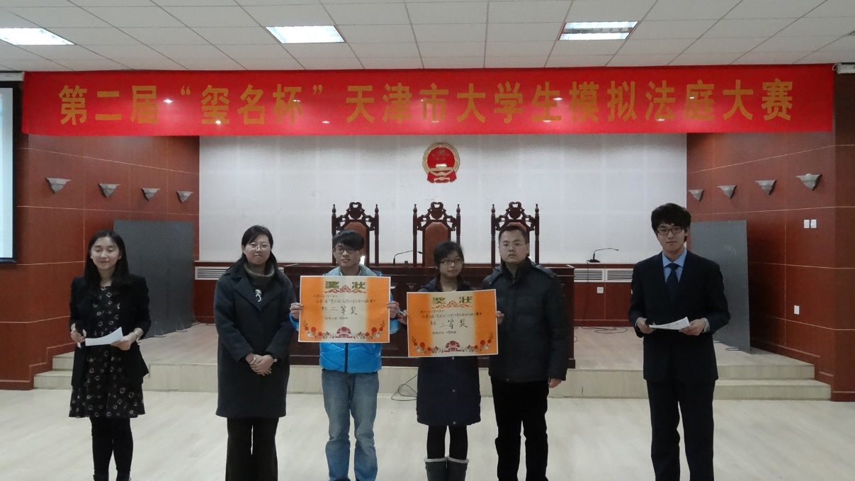 这是冰晶老师在2013年9月的天津市模拟法庭比赛中为获奖选手颁奖的一张照片。谈及到这张照片时,蒋老师笑靥如花。老师告诉我们一直以来学校的实践课程体系都较为完善,那次的天津市模拟法庭大赛是由我校的法律协会承办的,举办地点亦设我校。河工学子们通过学习“模拟法庭”课程,充分了解了模拟法庭的程序,在比赛中取得了优异的成绩。