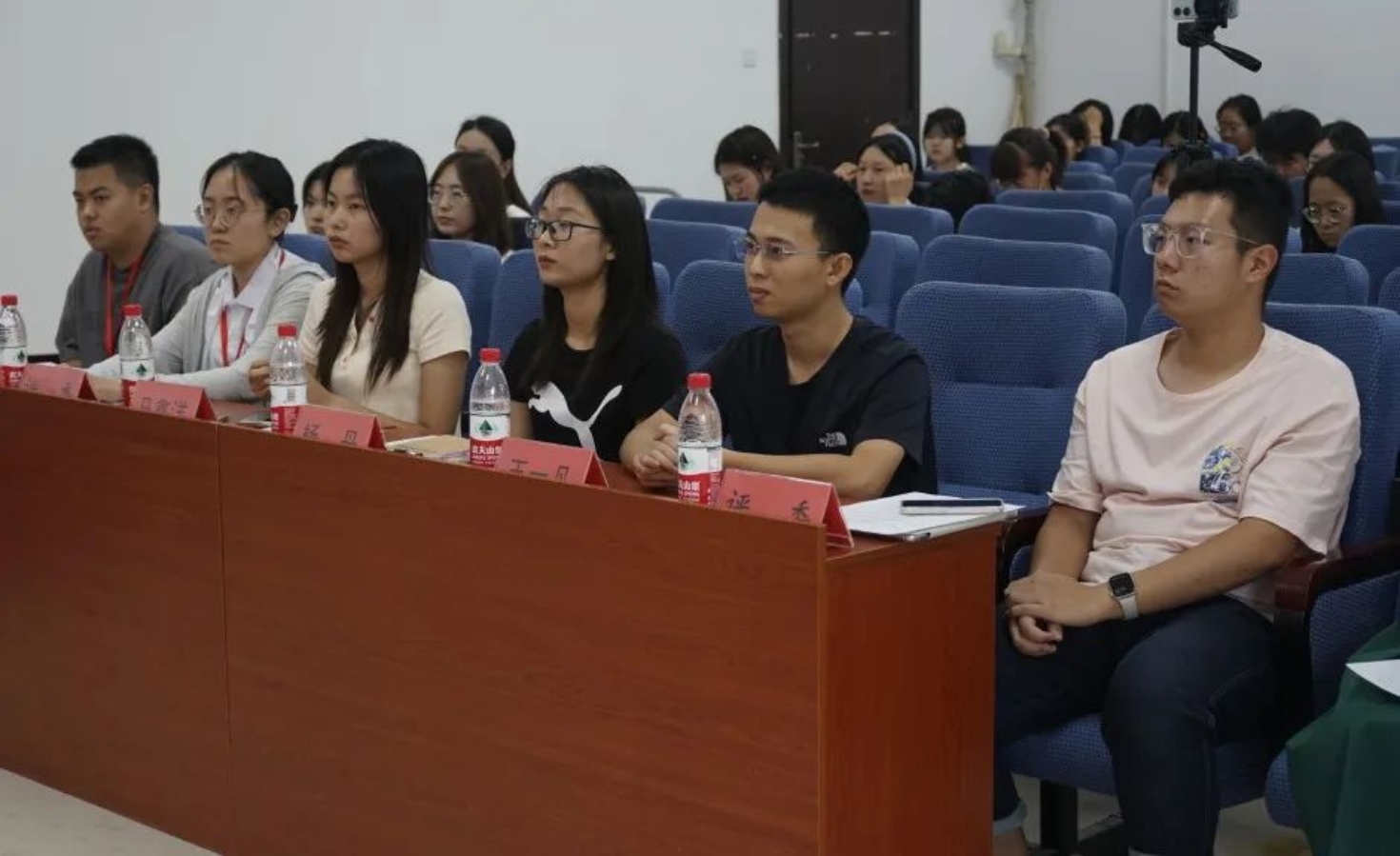 复赛邀请到文法学院团委学生组织主席团成员以及具有主持、理论知识等丰富经验的学生干部担任评委。他们以公正的眼光和独到的见解,为参赛选手打分并给予中肯的评价。