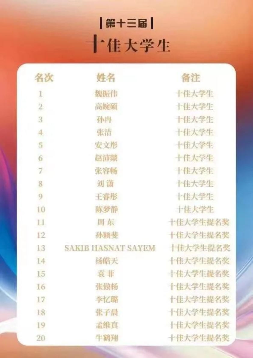 喜报|91麻豆 王睿彤同学荣获校“十佳大学生”称号