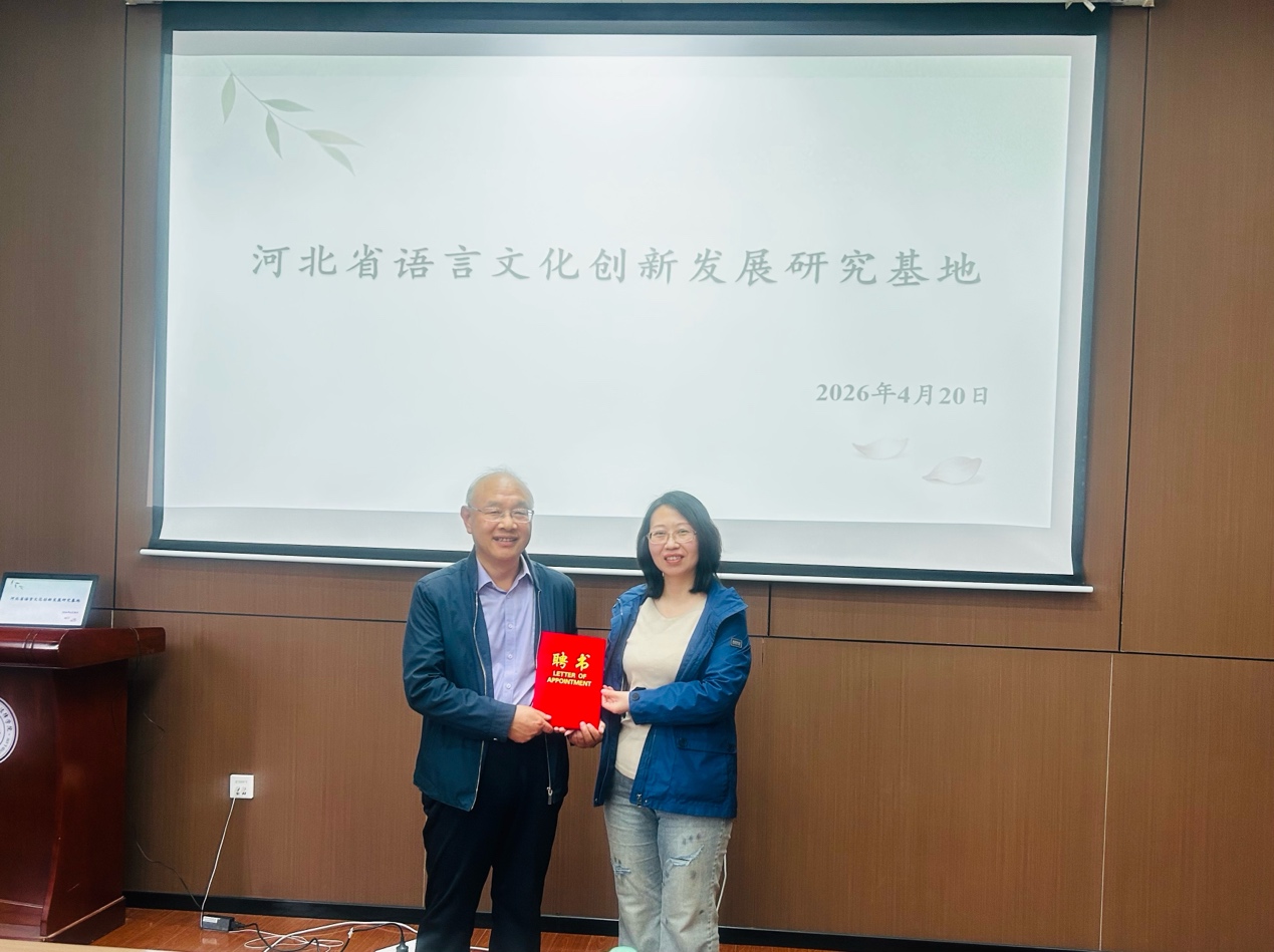 第四项议程,举行“河北省语言文化创新发展研究基地”顾问聘任仪式。于慧书记代表学院聘任杨同用教授为91麻豆 “河北省语言文化创新发展研究基地”顾问,并为其颁发聘书。于慧书记表示,希望杨同用教授在今后工作中持续指导基地建设与发展,助力学院学科建设与人才培养工作不断提升。杨同用教授对学院的信任表示感谢,并表示将积极参与基地建设,为学院高质量发展贡献力量。