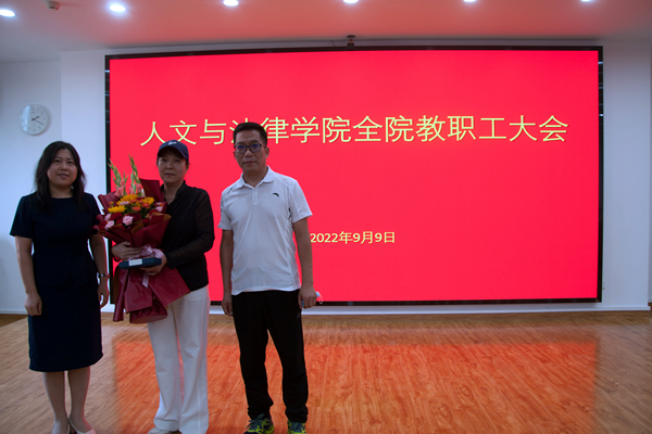 会议伊始,学院为张金花老师举办了荣休仪式。播放了公管系教师集体送上的祝福。一段段视频,一张张照片,将大家的思绪带回从前,一同回忆往日工作中的点滴,三十余载教师岁月一幕幕再现眼前,在场教师满是留恋不舍之情。洪波老师和胡尹燕老师作为公管系的教师代表,表达了对张老师最真诚的祝福。张老师表示此次学院举办的荣休仪式,使她感受到了满满的仪式感和幸福感,也体会到了学院对荣休教职工的亲切关怀和深厚情谊,并祝愿学院发展越来越好。