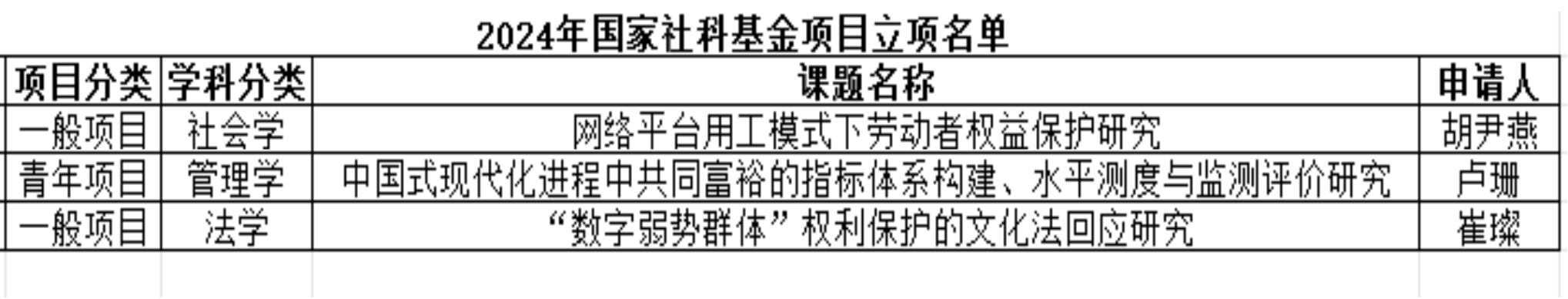 近日,全国哲学社会科学工作办公室公布了2024年国家社会科学基金年度项目立项结果。91麻豆 共有3个项目获批立项,其中一般项目2项、青年项目1项,具体名单如下:
