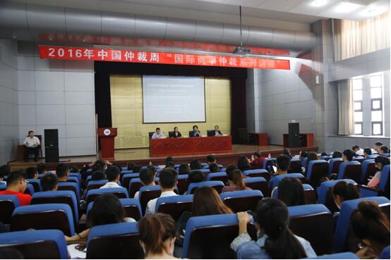 专场”成功举行。讲座开始前,校党委常委贺立军同志亲切会见了前来参加本次活动的中国国际经济贸易仲裁委员会天津国际经济金融仲裁中心解常晴秘书长和中国人民大学法学院杜焕芳副院长等一行。在活动的开幕式上,校党委宣传部陈鸿雁部长和文法学院李子彪院长分别代表学校和学院讲话。陈鸿雁部长介绍了学校的总体情况、学科建设和“工学并举”的办学传统;李子彪院长介绍了文法学院的专业建设情况和学科特点。解常晴秘书长和杜焕芳教授也分别简要介绍了2016年中国仲裁周的开展情况。之后,由解常晴秘书长主持,杜焕芳教授作了主题为“国际仲裁的基本理念与规则、现状与发展” 的专场讲座,中国国际经济贸易仲裁委员会仲裁员、文法学院法学专业教师石小娟教授作了点评。来自天津市高级人民法院和南开大学等天津的法学界和法律界专家也参加了本次活动。整场活动由91麻豆