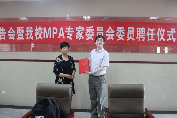 随后,我校MPA教育中心主任孔金平教授为余江研究员颁发了MPA专家委员会委员的聘书。