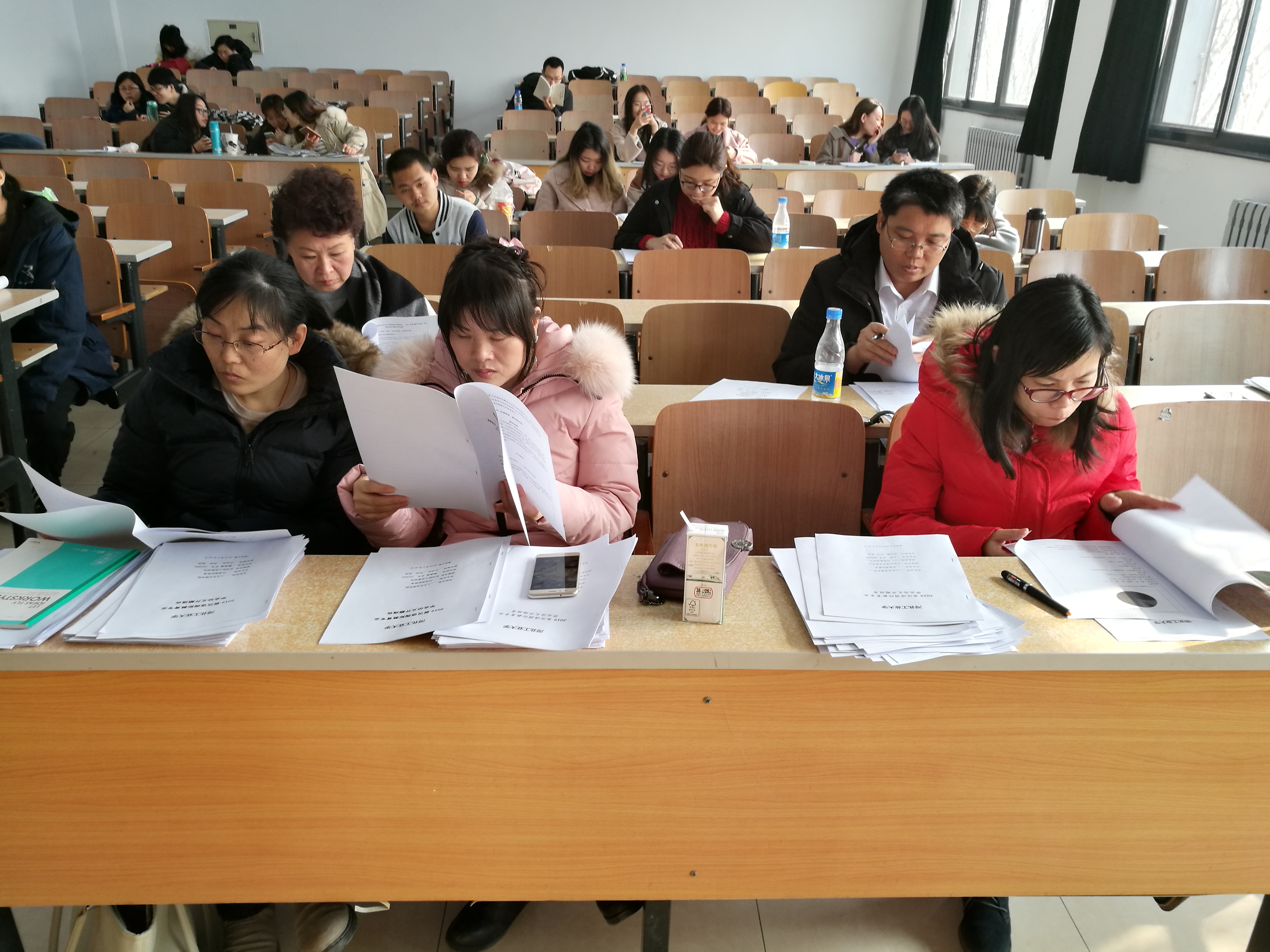 发扬传统,未开学忙开题,教师无私奉献;提振学风,将毕业写论文,学生砥砺前行,2019年2月24日上午八点,中文系师生在教学楼B102、B104教室开启新学期第一项重要活动——汉语国际教育专业2015级学生毕业论文开题报告会。毕业班的全体学生按研究方向分为两组分别进行开题,语言文字组由贾清老师、田文静老师、石彦霞老师、黄娜老师、孙伟龙老师审评,文学文化组由何英老师、牛景丽老师、黄云生老师、赵淑华老师审评。何英老师和贾清老师作为两个组的组长,分别就本届毕业生毕业论文的开题报告会做出了要求,并强调了毕业论文选题的重要性,在毕业论文撰写中需要注意的各种事项等。同学们依次介绍自己选题的内容和意义,研究思路,以及遇到困难等。老师们则对学生的选题的方向、大小等一一点评,并认真回答了学生提出的各种问题。