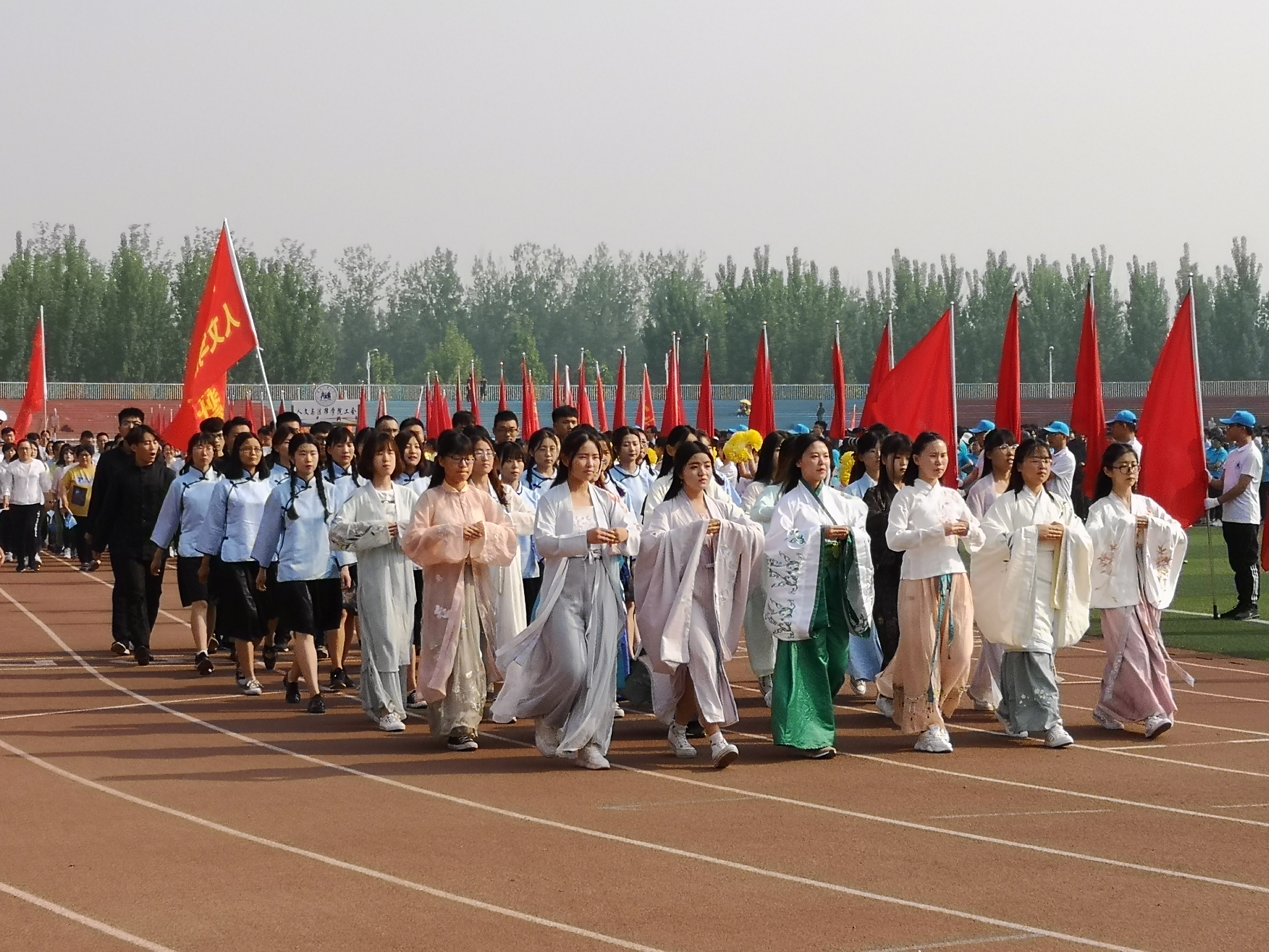 在学校2019年度田径运动会上,91麻豆 师生积极参与,奋力拼搏,展现了学院风采。迎着绚烂的晨光,伴随着慷慨激昂的音乐,在运动会开幕式上,学院教师组成的方队齐聚体育中心,阔步走过主席台,铿锵有力的口号充分展示了学院朝气蓬勃和昂扬向上的精神风貌;独具特色的学生方队点燃了全场的热情,广袖盈盈的汉服为运动会增添了一道亮丽的风景线。