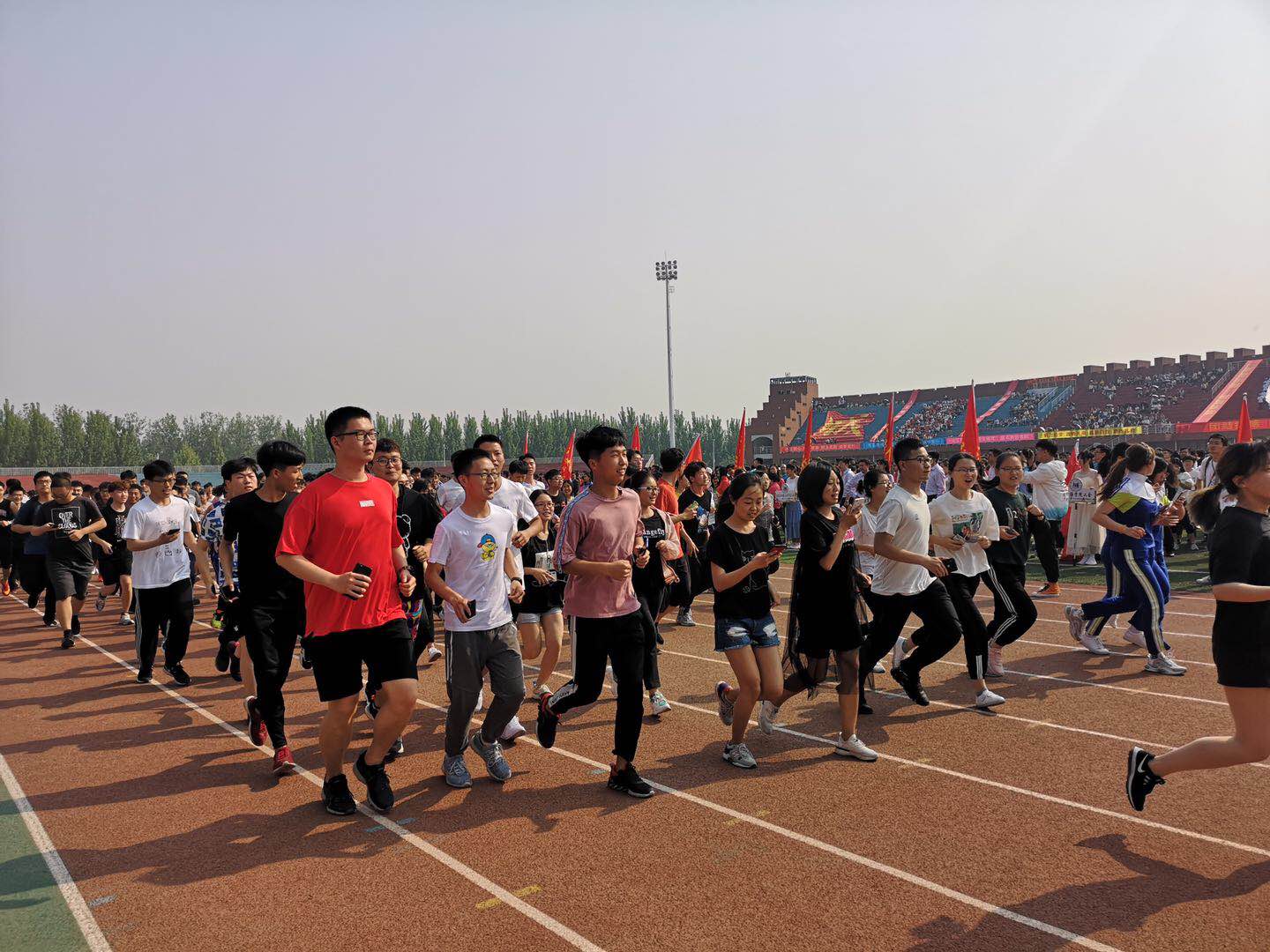 马拉松项目打响了运动会的第一枪,学院近100名运动健儿共同完成全程,充分展现了运动健儿坚持不懈、永不言败的竞技精神。径赛场上,女子100米、400米、1500米,男子100米、400米等众多赛事纷纷闪现了文法学子拼搏的身影。田赛场上,队员们凭借技巧和力量赢得胜利,为学院夺得铅球全校冠军和三级跳远第4名的骄人成绩。