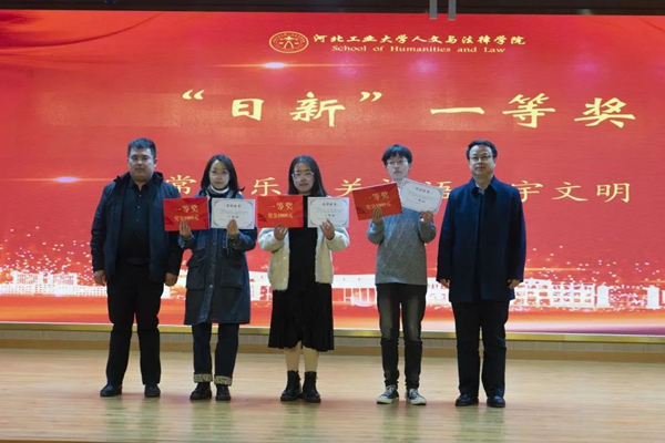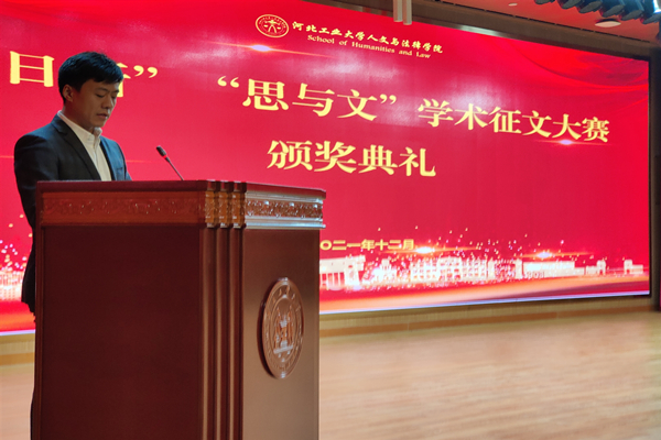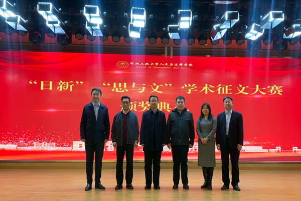 12月17日下午,学院“日新”与“思与文”学术征文比赛颁奖典礼在北辰校区图书馆一楼报告厅隆重举行。校党委常委、纪委书记孟祥群,院党委书记白彦刚,院长李艳双,副书记李彦磊,副院长马立民,2009级校友李欢及部分教师代表参加了此次颁奖大会。会议由学工办主任高雪冬主持。