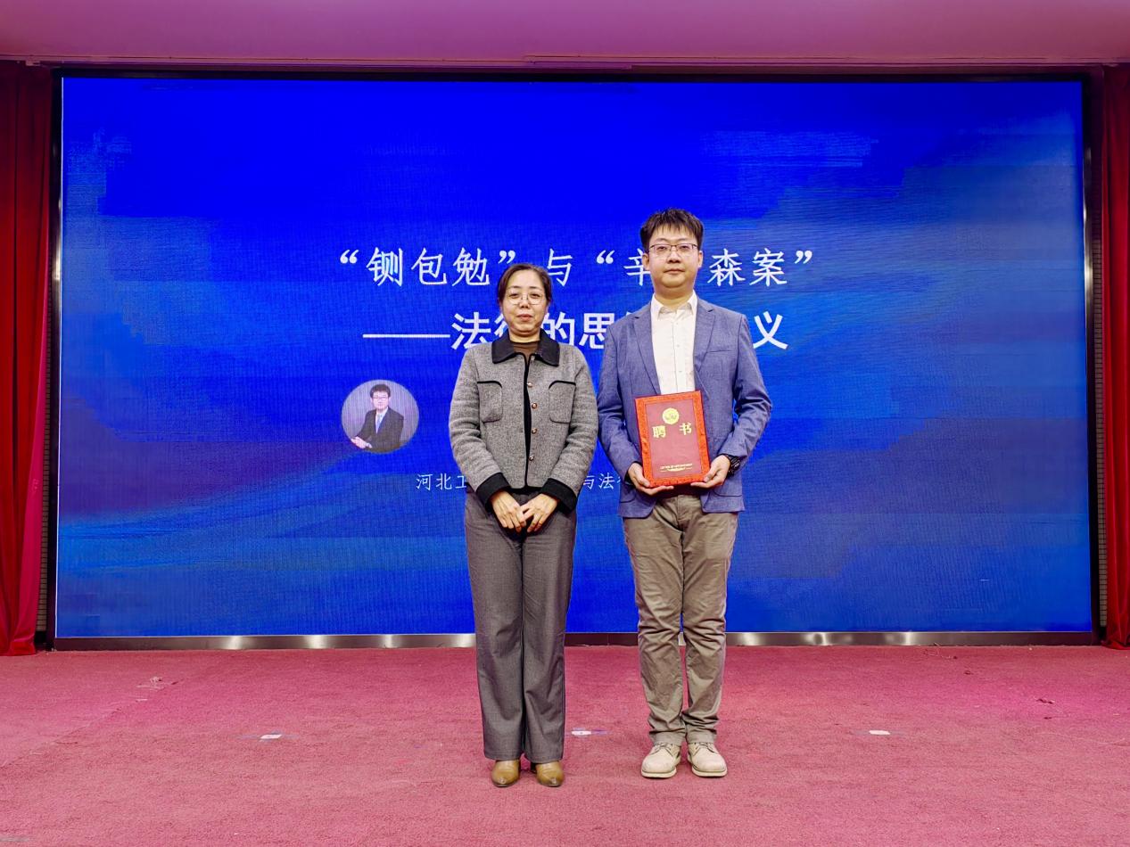 王老师从实体正义与程序正义的对比切入,引导学生理解法律思维的多维性,打破对“正义”概念的单一维度认知。该校师生积极参加了讲座活动并普遍表示,通过此次讲座,大家深刻体会到了实体正义和程序正义的重要意义,增强了规则意识与法治观念。讲座活动后,附属红桥中学副校长柳燕代表学校向王海龙副教授颁发了学科特约专家聘书。