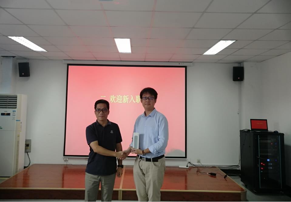 首先,高雪冬老师隆重介绍了新入职教师王海龙。白彦刚书记为新入职教师赠送了礼物。随后,王海龙老师进行发言,表示感谢学校、学院领导的信任和鼓励,在今后的工作中定会潜心求知,踏实工作,尽快投入到新的工作环境中,为学院新一轮的发展添砖加瓦,为学校“双一流”建设贡献力量。